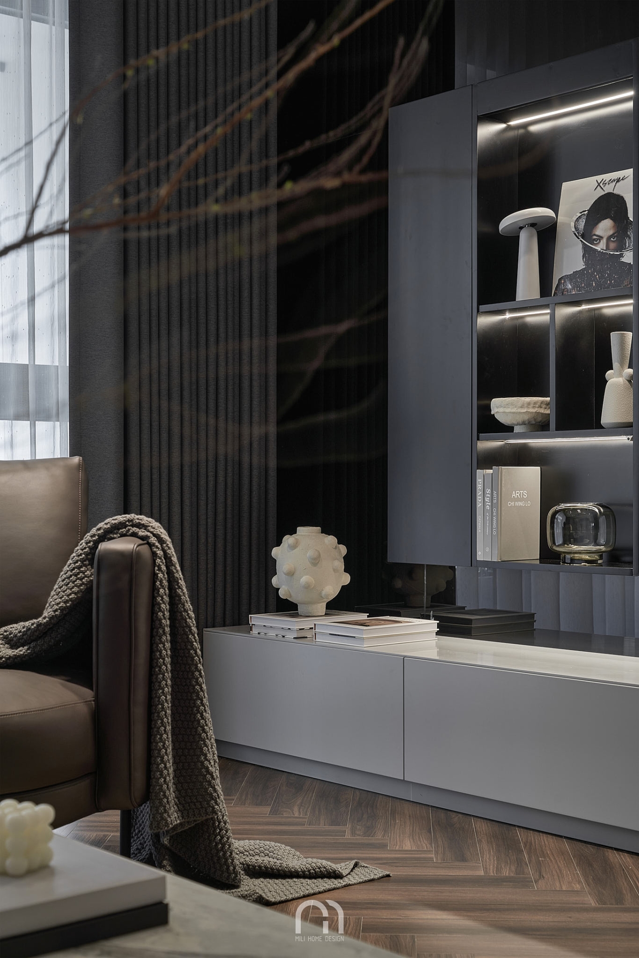 DHP Group đã thiết kế và thi công nội thất căn nhà theo phong cách sang trọng, lịch sự, chú trọng sự hài hòa giữa công năng và thẩm mỹ. Phòng khách được bố trí hiện đại, sử dụng vật liệu mới để tạo cảm giác thoáng đãng, tiện nghi. Các chi tiết nội thất được xử lý tinh tế, mang lại sự đồng bộ và nâng tầm không gian sống.